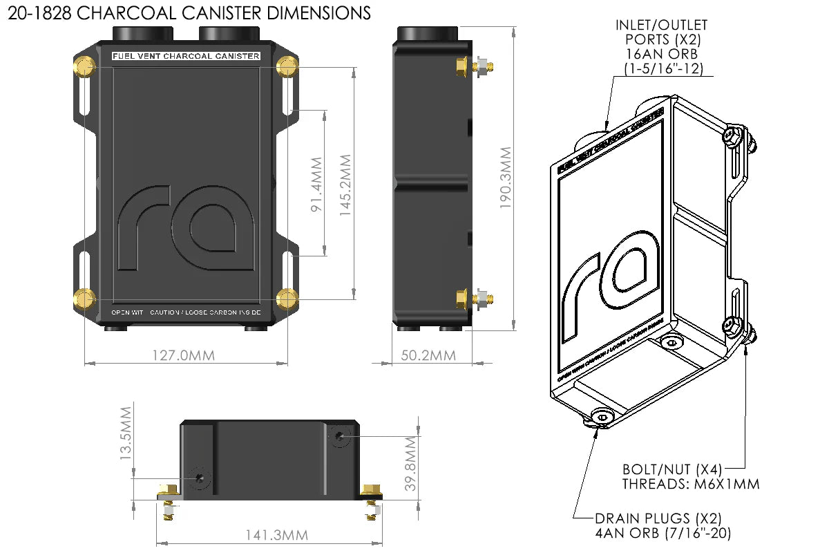 Radium Engineering charcoal canister purifies odors that emit from the fuel tank vent system. It is designed for both EFI and carbureted fuel systems